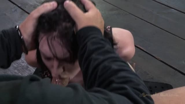 Hot MILF has her tits brutally bound, her throat fucked upside down, and made to cum from huge cock!