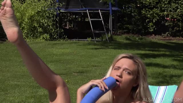 Natalia Queen plays with a toy on a table until she cums